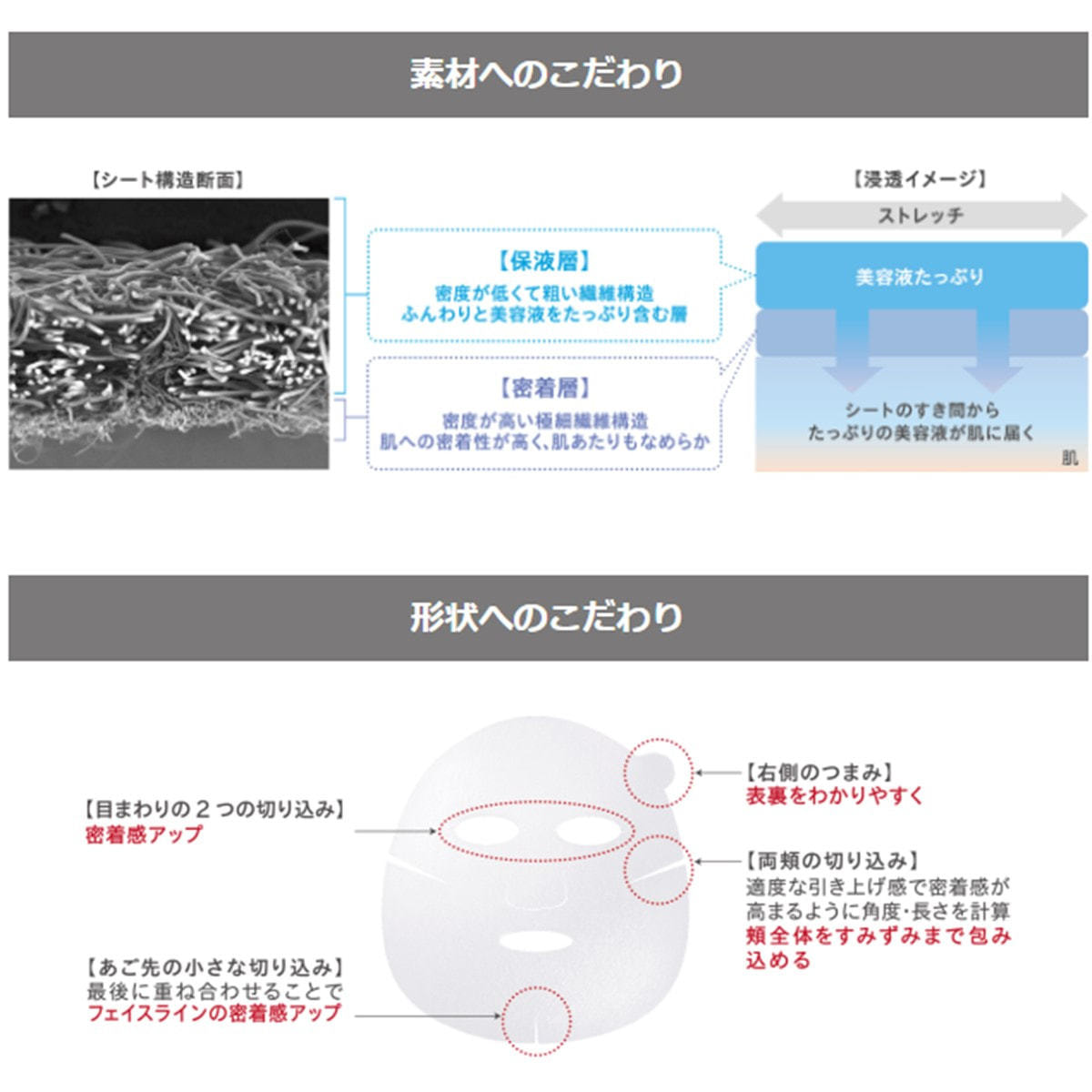 ・保湿層:密度が低くて新井繊維構造でふんわりと美容液をたっぷり含みます。