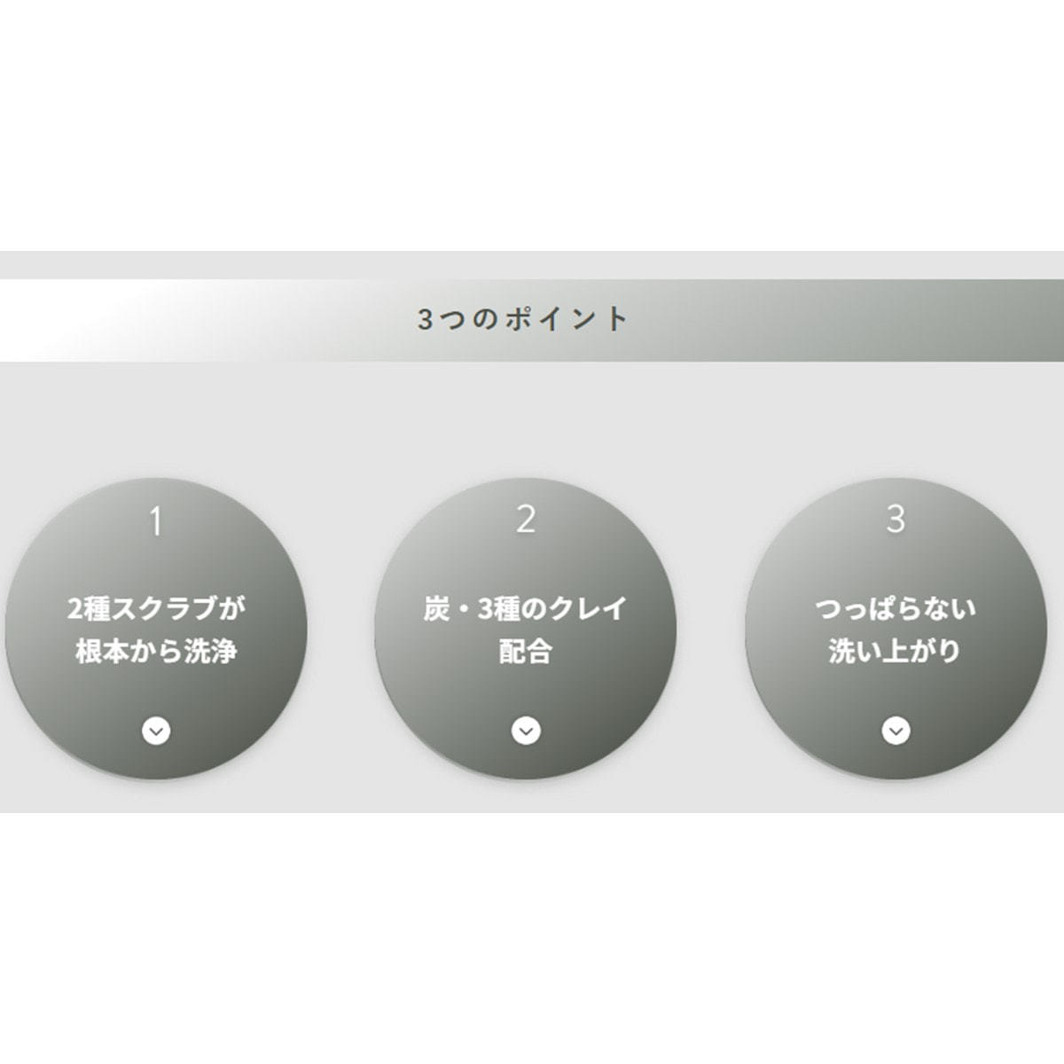 ※保湿スクラブはグルコマンナン・(メタクリル酸グリセリルアミドエチル/メタクリル酸ステアリル)コポリマー・グリセリン、自然由来マイクロスクラブはシリカ、3種のクレイはタナクラクレイ・カオリン・ベントナイト、アミノ酸系洗浄成分はココイルグリシンK、吸着型ヒアルロン酸はヒアルロン酸ヒドロキシプロピルトリモニウム、緑茶エキスはチャ葉エキス