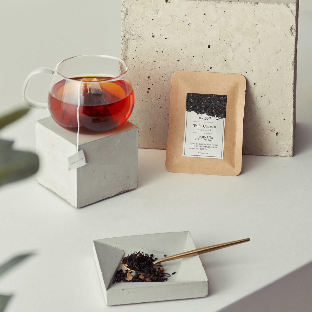 ローストカカオの上品で奥深いアロマが、セイロン紅茶の軽やかでまろやかな味わいと絶妙に重なり合う「トリュフショコラ」。