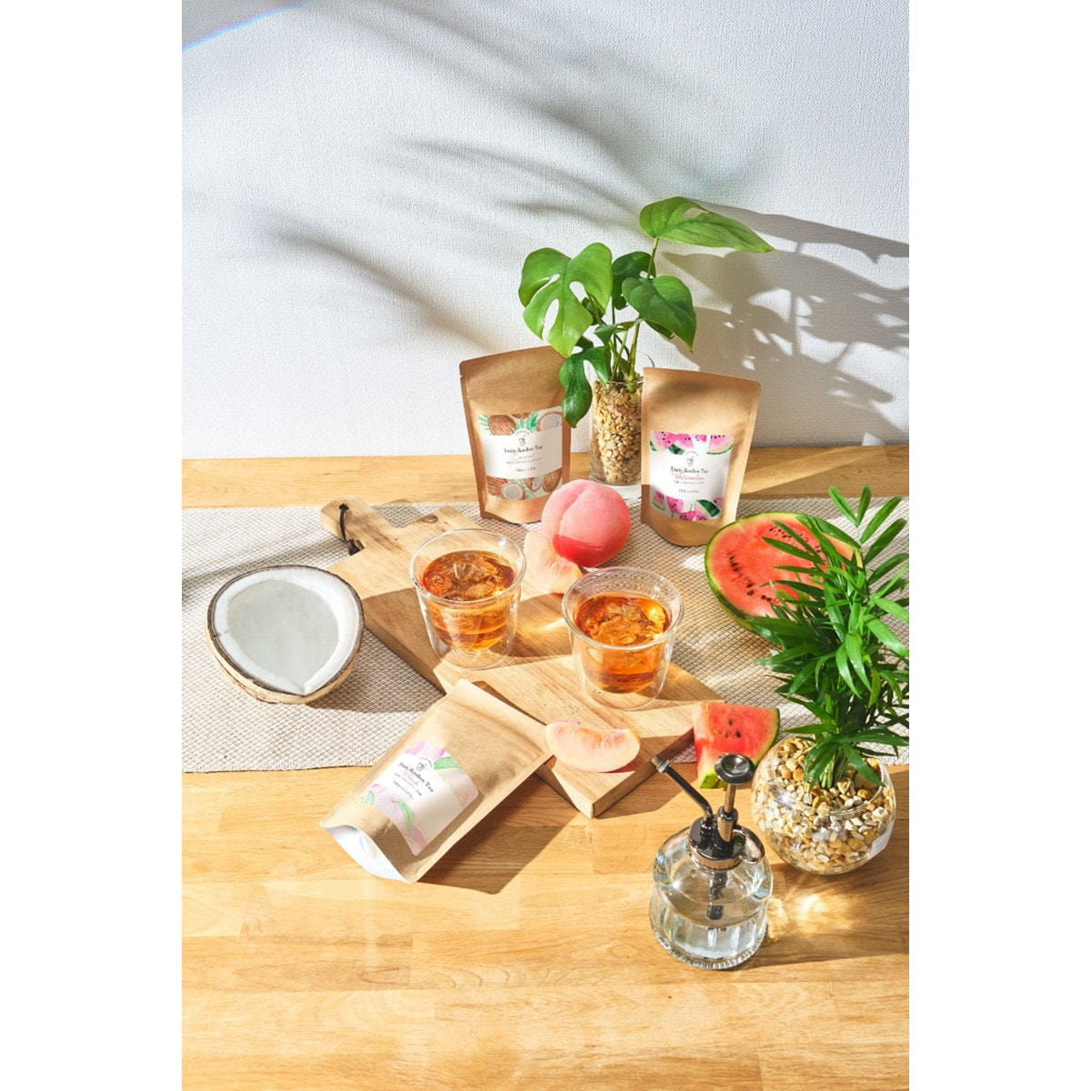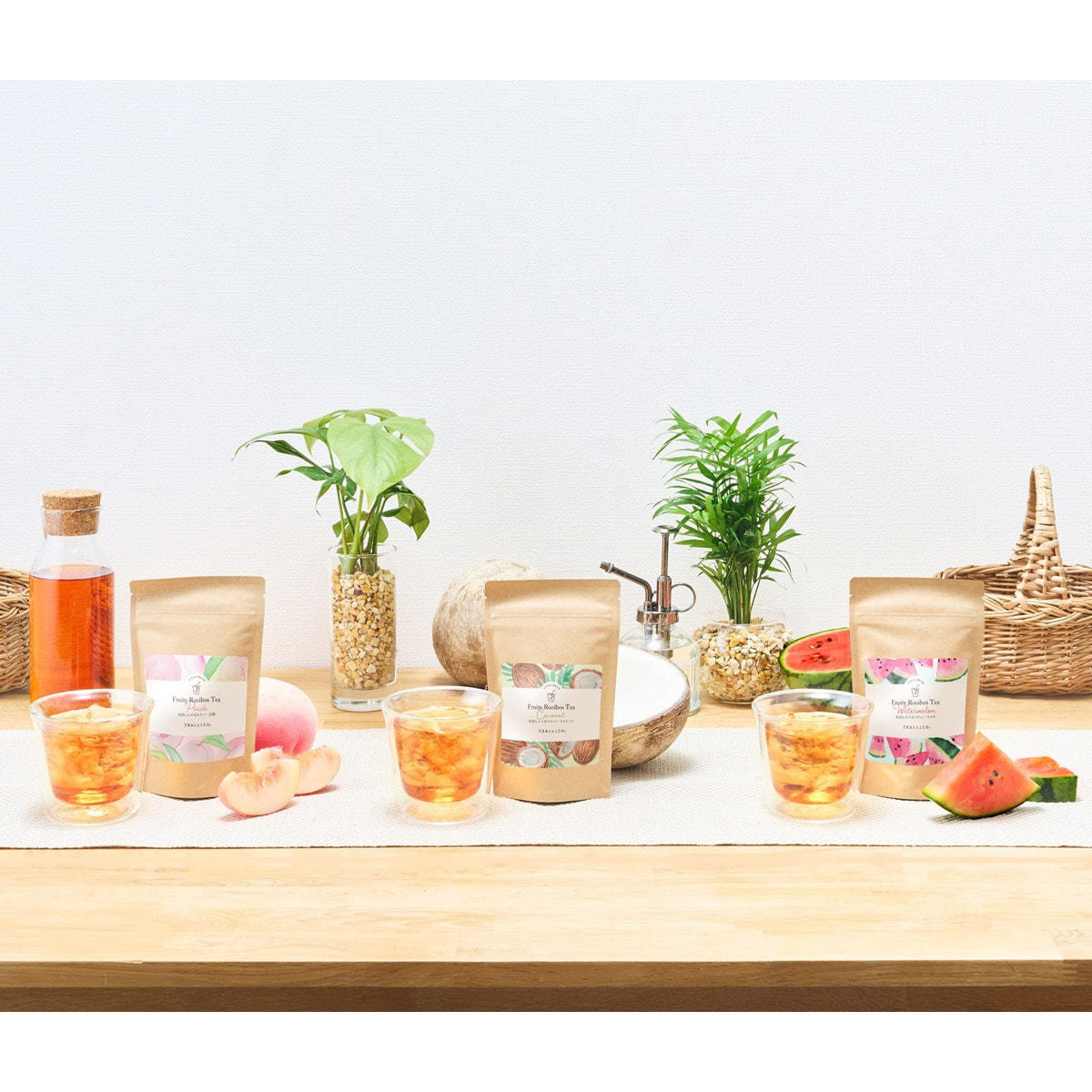 ジューシーで甘く爽やかな香りが、ふわっと広がり、よく冷やしたルイボスと重なり合うことで、夏の日差しを忘れるほどの清涼感に包まれます。